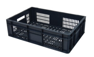 Plastlåda 600x400x200mm, 40 liter, grå, perforerad