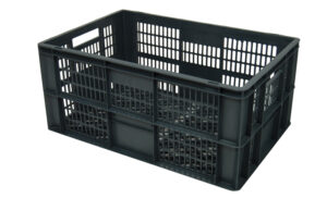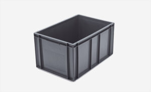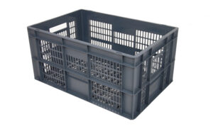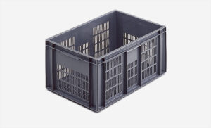 Plastlåda 600x400x300mm, 50 liter, grå, konisk, perforerad