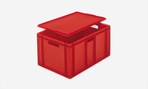Plastlåda 600x400x300mm, 50 liter, grå/röd, konisk